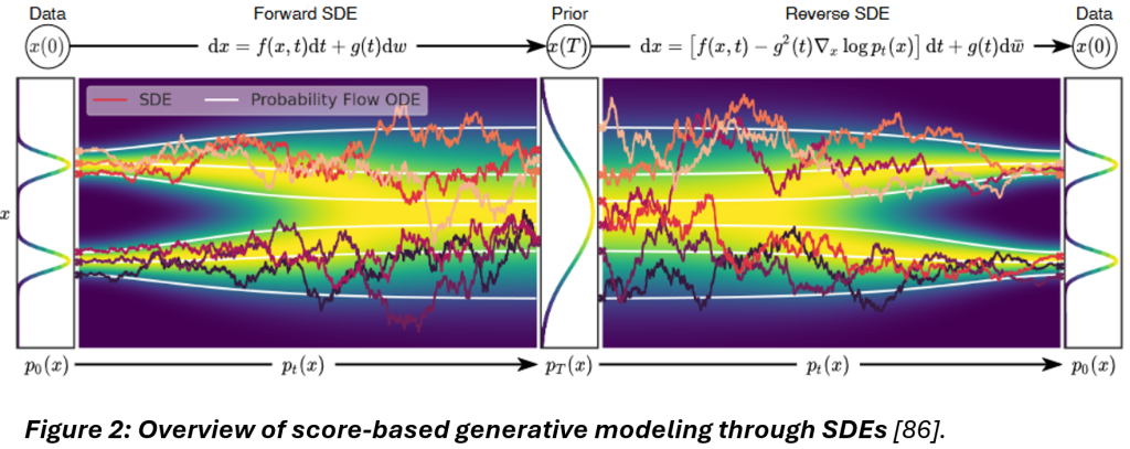 One of the most resounding recent contributions to diffusion research has been the unified framework presented by Song et al. “to explore and tune various SDEs for improving score-based generative models,” depicted in Figure 2, below [86].
