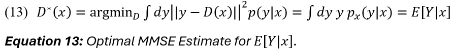 The next step is to define an MMSE estimator D for Y, in which Y is conditional on current data x (13):