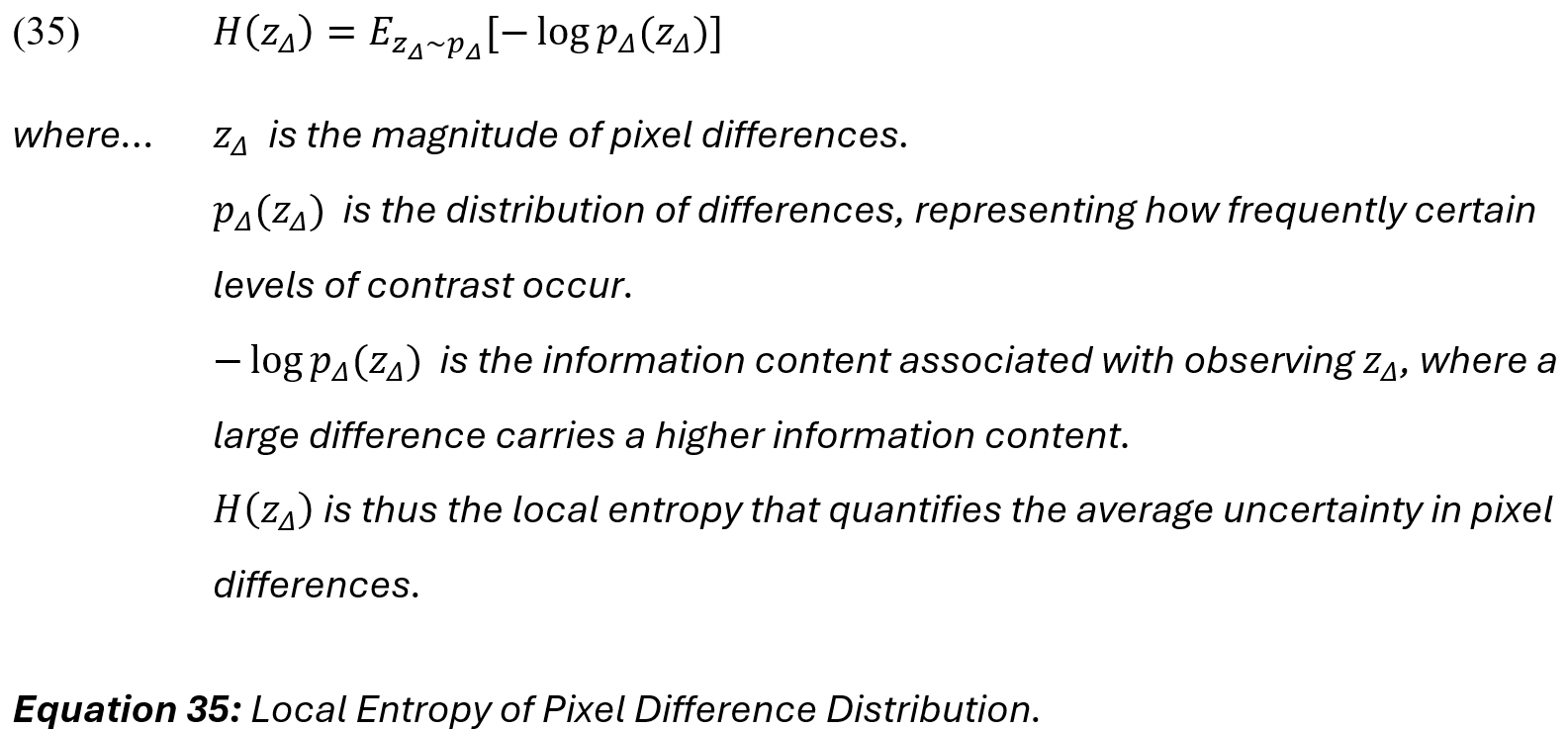 Therefore, the final metric to express discrete local entropy of pixel differences is: