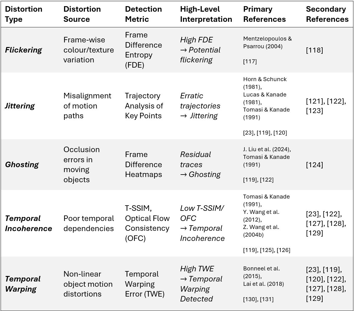 Spatial distortions, such as warping, artefact manifestation, and scaling inconsistencies, disrupt the structural integrity of individual frames, leading to unnatural object appearances or lighting, and misaligned textures. Temporal distortions affect frame-to-frame consistency and, when present, manifest as flickering, jittering, or abrupt changes that break the illusion of continuous motion. To provide variety, this section will explain spatial distortions through a simple illustrative example and discuss temporal distortions from a more traditional theoretical perspective. Additionally, this section will briefly discuss how coherence and lengthier sequences are achieved. Many video generation frameworks adopt a “block-based” approach to control spatial and temporal components, meaning that they process sequences of frames as coherent units. Blocks can be used to control video slices, or segments, that represent a subset of spatial and temporal dependencies. By combining them, we can form longer video sequences that better capture motion patterns and maintain coherence across frames.