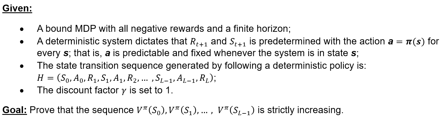- Transitions between states are deterministic, i.e., selecting a in s always moves the agent to s’ without randomness);